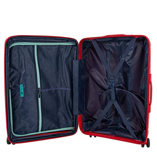 MALETA MEDIANA EXPANDIBLE, MATERIAL POLIPROPILENO, CREMALLERA DE SEGURIDAD, INTERIOR CON SEPARADORES Y CINTAS AJUSTABLES SUJETA-ROPA, RUEDAS DOBLES SILENCIOSAS, ASA TELESCÓPICA, CERRADURA TSA DE SEGURIDAD CON COMBINACIÓN, CAPACIDAD 65L (+12L), COLOR ROJO, GARANTÍA 3 AÑOS