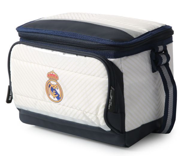 NEVERA PLEGABLE REAL MADRID, AISLAMIENTO DE ALTO RENDIMIENTO SUPERFOAM, BOLSILLO EXTERIOR CON CIERRE, CORREA DE HOMBRO AJUSTABLE, TIRADOR DE CIERRE DE GOMA MOLDEADA, MANTIENE EL HIELO HASTA 1 DÍA