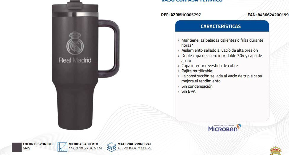 VASO TÉRMICO CON ASA 1.2 LITROS REAL MADRID